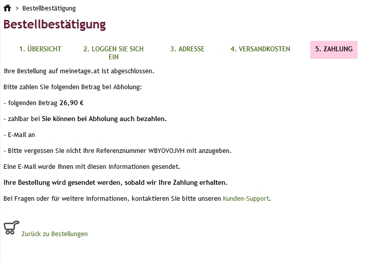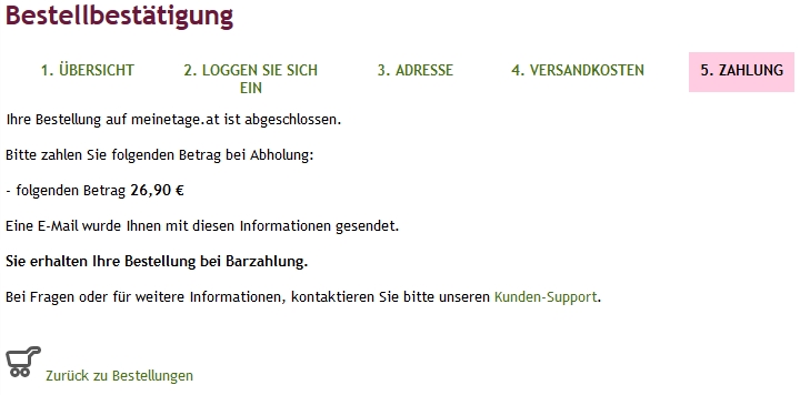 Am Schluss kommt eine Übersicht für den Kunden mit "Bestellbestätigung".