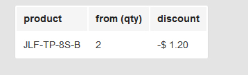 carmy Posted March 22, 2013 Author Share Posted March 22, 2013 (edited) I would like to see the price as follows: Product Quantity 1 = final cost 22.90 Product Quantity 2 = final cost 23.90 (+ € 1) Product Quantity 3 = final cost 24.90 (+ € 2) Product Quantity 4 = final cost 25.90 (+ € 3) and so forth septum definitely something wrong Edited March 22, 2013 by carmy (see edit history) Link to comment Share on other sites More sharing options...