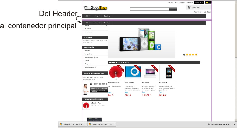 Como mover el blocktopmenu del header al contenedor principal y lo mismo con el footer