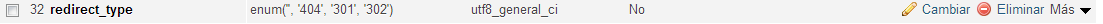 miriamgomez Posted March 25, 2013 Author Share Posted March 25, 2013 Hola: he leido el post y he tratado de seguirlo, pero hago algo mal, explco mis pasos: 1) He entrado en mi phpadmin 2) he buscado la tabla ps_product 3) He buscado la linea: Si no entendí mal el post, tengo que sustituirlo por: alter table ps_product add column redirect_type int (10) ; Pero aqui empiezan mis problemas: ni a traves de la pantalla SQL y manualemnte puedo cambiarlo. Hago algo mal? Alguna idea como solucionarlo? Link to comment Share on other sites More sharing options...