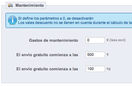 TAMARGOT Posted March 26, 2013 Share Posted March 26, 2013 Problema: A la hora de hacer una compra, durante todo el proceso de la cesta de la compra sólo me salía ENVIO GRATUITO. (en mi caso prestashop 1.5). Y tenía configurados varios métodos de transportes y asignadas zonas a cada uno. Después de muchas horas revisando foros y opciones no lograba dar con la solución. Había revisado muchos posts donde se comentaba cómo añadir transportistas, etc. El caso es que todo seguía sin funcionar. Siempre me salía ENVIO GRATUITO, tanto al principio del proceso de compra como al final. Y además cuando llegaba al paso de la compra de Transporte no me daba opción de seleccionar transporte. La solución (al menos en mi caso): Desde la zona de administración me voy a ENVIO --> ENVIO Y en la zona que dice "MANTENIMIENTO" es donde voy a modificar valores. Ahí prestashop me decía: Si define los parámetros a 0, se desactivarán<-- MAL Y por defecto venían puestos en 0, con lo cual entiendo que deberían estar desactivados. Pero parece ser que no. Fue añadir valores y comenzar a funcionar los gastos de envío. El envío gratuito comienza a las 500€ El envío gratuito comienza a las 100Kg (esto significa que le estoy diciendo a la tienda que el envío sea gratuito sólo si pasa de los 500€ o pesa más de 100kg) Realicé la prueba comprando un producto de 1Kg y 3€ y automáticamente me aparecía mi transportista por defecto desde el inicio, y al llegar a la pestaña de compra "Transporte" me permitió seleccionar entre los que tenía como posibles. Espero que a alguno le sirva, porque a mí me tenía ya loco. Asumo que el resto de la configuración de transporte la tengáis bien. Sino aquí podéis ver una guía de jmmayoral donde explica como configurar los impuestos y el transporte: VER ENLACE al POST con la GUIA Free Shipping SOLVED. 2 Link to comment Share on other sites More sharing options...