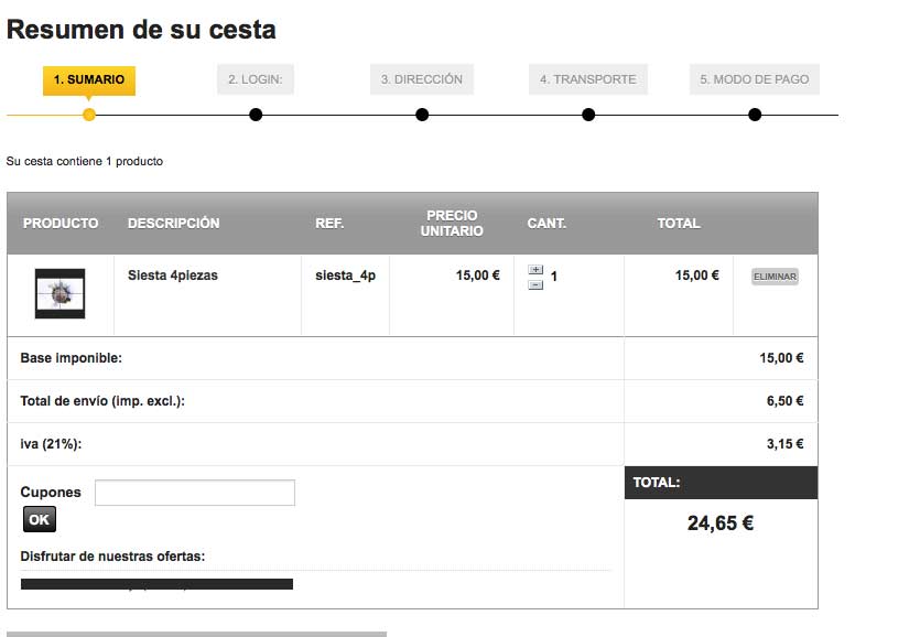 sergio_bolo Posted March 27, 2013 Share Posted March 27, 2013 (edited) Hola. Me gustaría que los detalles del resumen del carrito se vieran en el siguiente orden: 1. Precio total de productos 2. Iva referente a estos productos 3. Gastos de envio Ahora mismo tengo el orden tal y como adjunto en la imagen. Saludos y gracias¡ Edited March 27, 2013 by sergio_bolo (see edit history) Link to comment Share on other sites More sharing options...