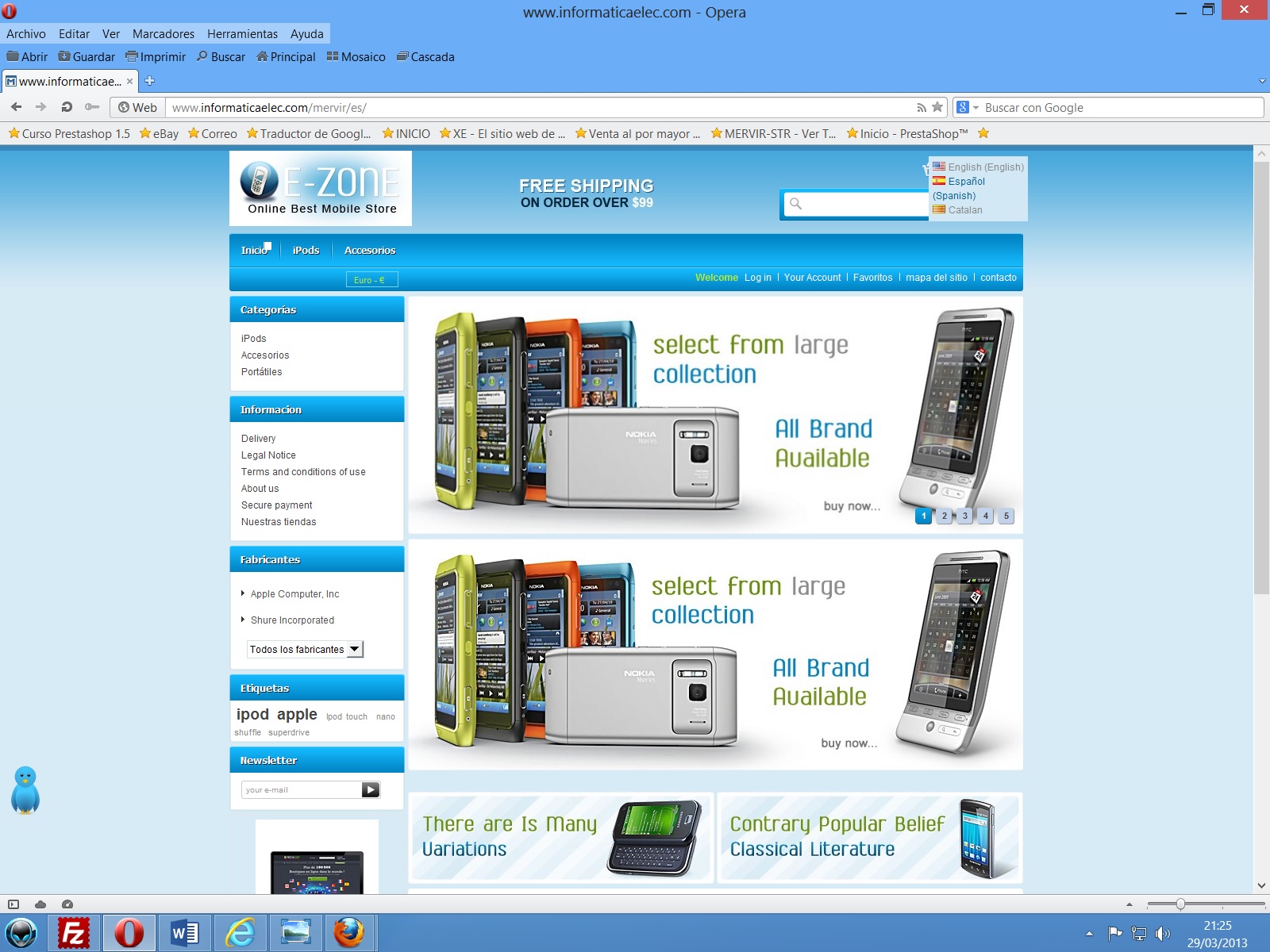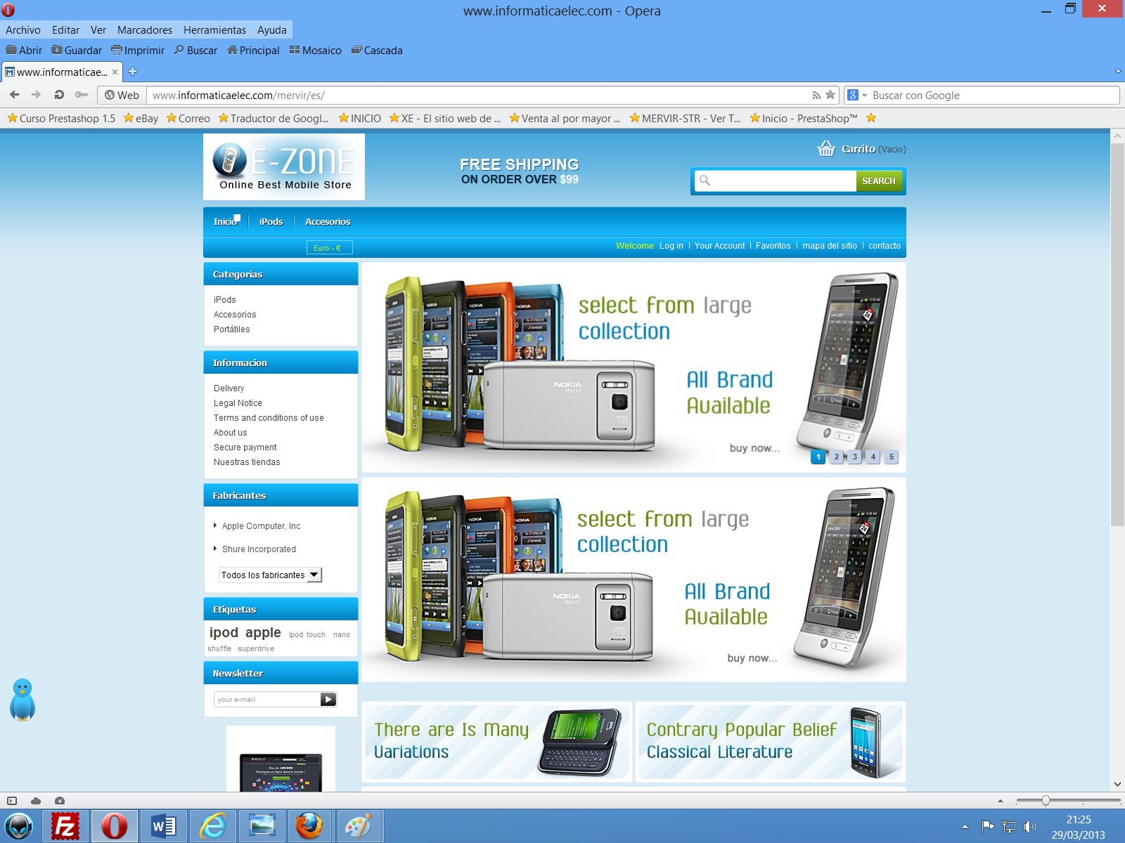 Informaticaelec.com Posted March 30, 2013 Author Share Posted March 30, 2013 disculpen que me meta en lo que no me importa, una observacion al compañero del post En esta imagen http://www.informati...ubbanner_00.jpg me parece que trataste de decir "There are many variations" cierto? Jeje, compañero, esa imagen viene con el tema, nada mas tenga los productos para subir, todas esas imagenes van fuera jeje Saludos Link to comment Share on other sites More sharing options...
