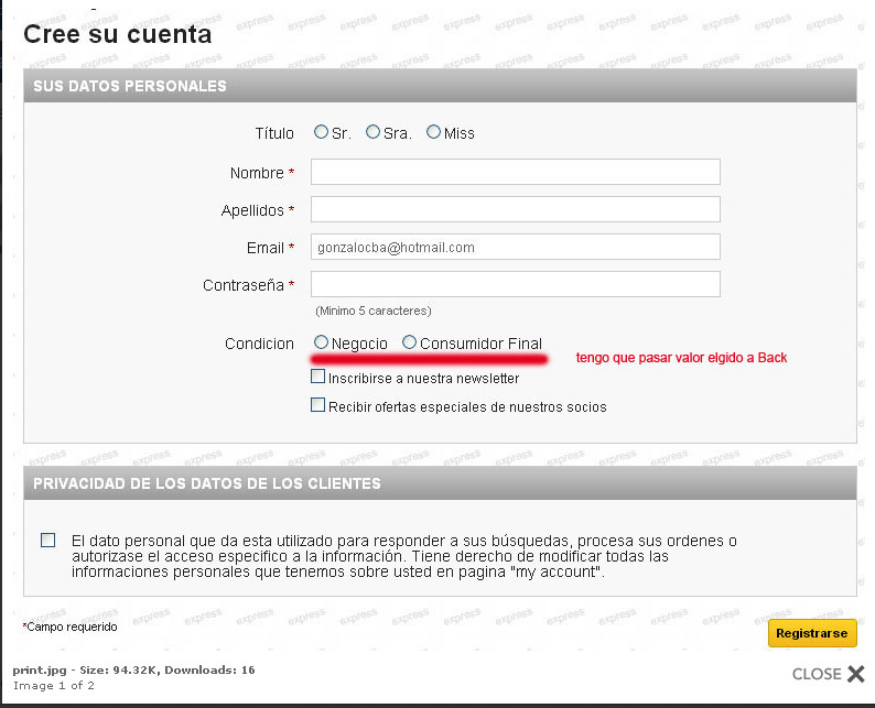 estoy modificando el formulario de login ... lo que necesito es poder llevar los datos de los botones de opcion que cree negocio - consumidor (estan en print)