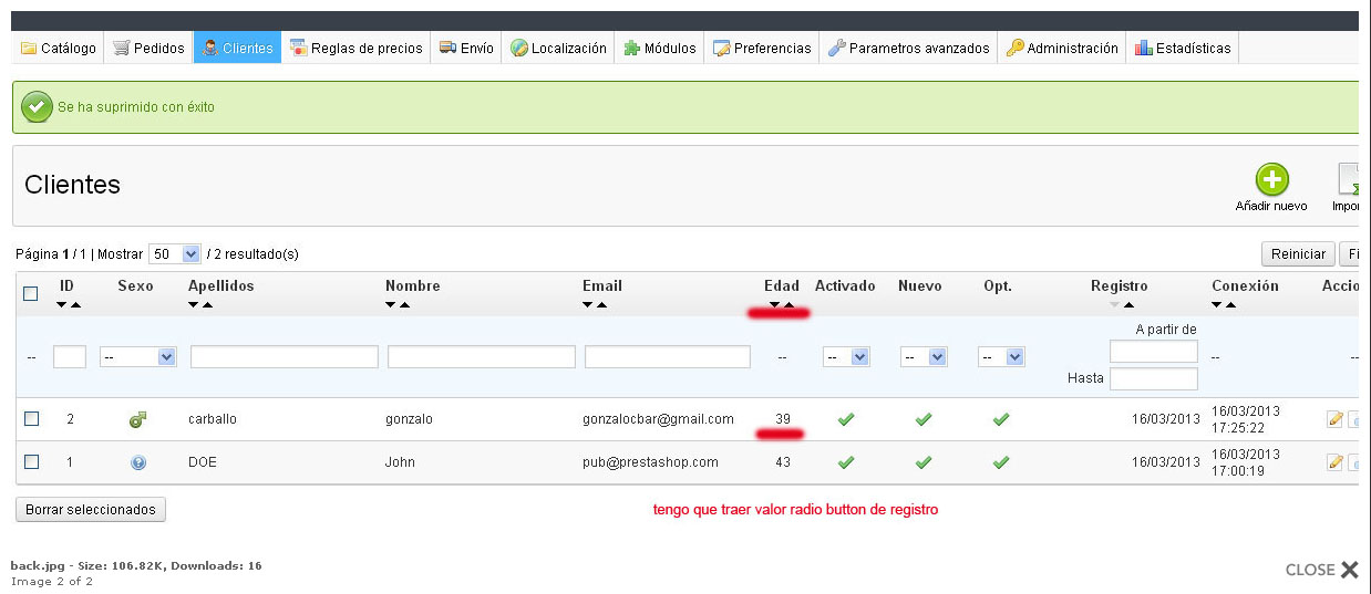 tendria que llevar el valor elegido a la DB y que aparezcan en el backoffice donde esta id, apellido, nombre etc lo reemplazaria donde dice edad pondria title condicion y que me traiga el valor de la opcion elegida de radio button