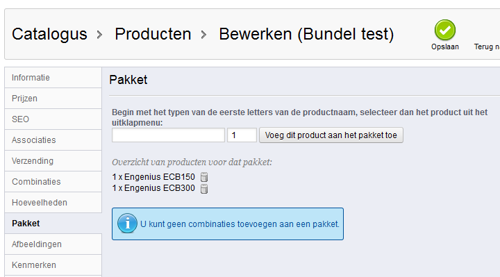 BuB Posted April 1, 2013 Share Posted April 1, 2013 (edited) Ik heb als test een pakket samengesteld met de ECB150 en de ECB300 (zie screenshot). Toch wordt de inhoud verkeerd weergegeven: http://www.wifinetwe...undel-test.html Hoe kan dit? Opgelost met dit bestand https://github.com/PrestaShop/PrestaShop/blob/02bbfb25d667bdf2b3f4adc696ec067f07c31750/classes/Pack.php Edited April 1, 2013 by BuB (see edit history) Link to comment Share on other sites More sharing options...