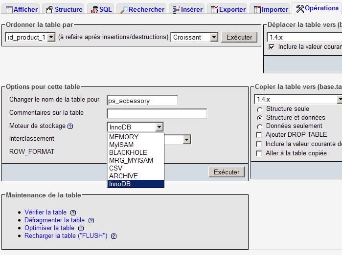 En faisant un basculement par table phpmyadmin au départ en 1.4.7 j'ai 243 tables en mysam et quand je migre je me retrouve avec 304 tables mélangés les tables mysame et innodb