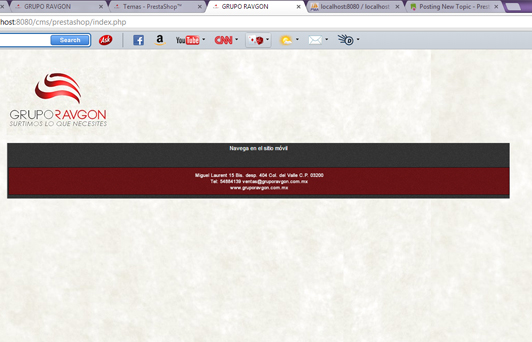 chioaskins Posted April 3, 2013 Share Posted April 3, 2013 Hola a todos: Estuve migrando mi tienda a servidor y durante la migración algo paso que ya no se ve ni en mi servidor local ni en el servidor web. Lo único que se ve es la imagen del logo y el footer. El tema que estoy utilizando es el defult, pero he instalado otros temas y tampoco se ven los módulos. Alguien puede ayudarme? Anexo la imagen del servidor local: Link to comment Share on other sites More sharing options...