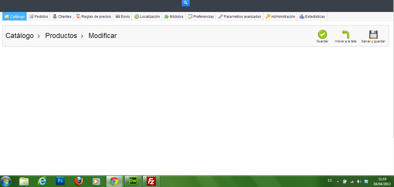 mejia Posted April 4, 2013 Share Posted April 4, 2013 Buenas no se si estoy poniendo bien este problemilla. Estoy teniendo un problema, en el back de mi prestashop, intento añadir o modificar un producto pero solo me aparece el titulo de catalogo - producto. ya tengo activado el debug pero no me aparece ningun mensaje ni ninguna informacion de error. tampoco me estan apareciendo las notificaciones en el back en la parte superior donde se encuentra los simbolos de cesta-registro-comentario. No se a que se debe. Espero que me puedas ayudar porque no se por donde buscar. Solo me aparece lo que se ve en la imagen. gracias Link to comment Share on other sites More sharing options...