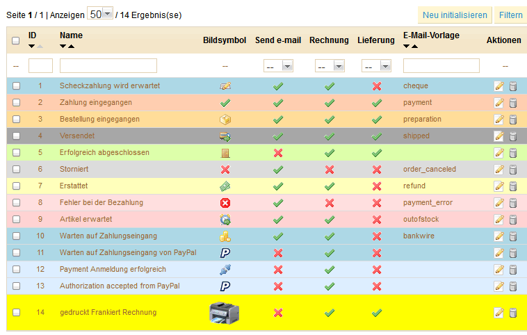 BoKr Posted April 5, 2013 Share Posted April 5, 2013 Hallo Ich habe noch einmal eine Frag zu den versch. Statuse im Bereich Bestellungen. Heute gab es mal wieder eine Bestellung mit unterschiedlicher Rechnung- und Lieferungsadresse. Problem ist, dass wir keinen Lieferschein ausdrucken können, sofern wir nicht den Status auf versendet stellen. Das möchte ich aber so nicht. Denn es soll der Status Versendet nur eingestellt werden, wenn wirklich versendet wurde. D.h. Für uns, wenn wir den Beleg unseres Spediteurs haben... Ich dachte die Lösung wäre einfach: 1. ich ändere zum Beispiel den vorgegebenen Status für Zahlung eingegangen, und aktiviere die Funktion, dass ein Lieferungsschein angelegt werden kann. 2. ich lege einen neuen Status an, und aktiviere dort diese Funktion. Das habe ich zum Beispiel getan, und diesen Status habe ich dann genannt zum Beispiel: frankiert und ausgedruckt. Das Problem ist, dass in beiden Fällen Prestashop einen komplett falschen Lieferungsschein ausdruckt. Und zwar zieht Prestashop die Adresse 01 aus der Datenbank. Das ist die von Jon DOE, die aus der Demo stammt und die ich nicht gelöscht habe, weil ich nicht weiß, obwohl es Module gibt dafür, ob ich nun bei Prestashop 1.4.9 Bestellungen löschen darf. Steht der Status auf versendet, dann ist es kein Problem den richtigen Lieferschein zu drucken. Kann man dieses Problem lösen? Link to comment Share on other sites More sharing options...