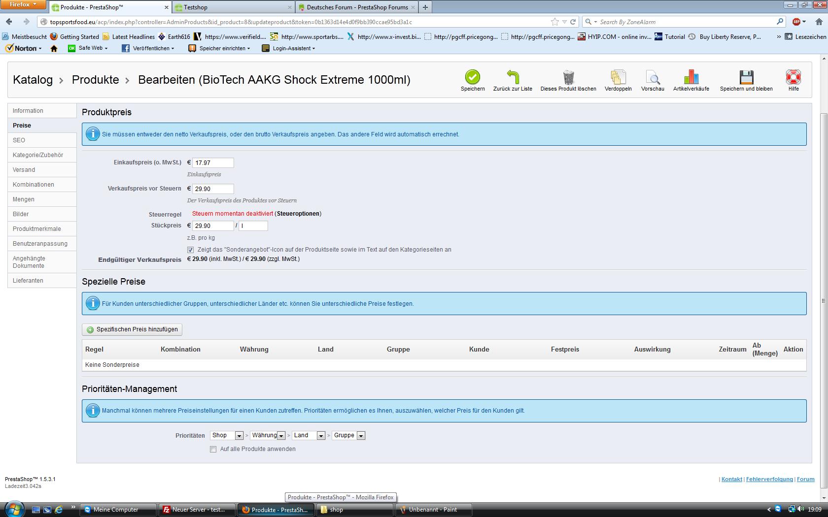 guest* Posted April 6, 2013 Share Posted April 6, 2013 Kein Problem, war ja nur ein Hinweis, damit das Forum auch übersichtlich bleibt. Aus den Bildern sehe ich, dass du keine Sonderpreise konfiguriert hast. Du musst Sonderpreise im Artikelbild dort unter "Spezielle Preise" konfigurieren. Link to comment Share on other sites More sharing options...