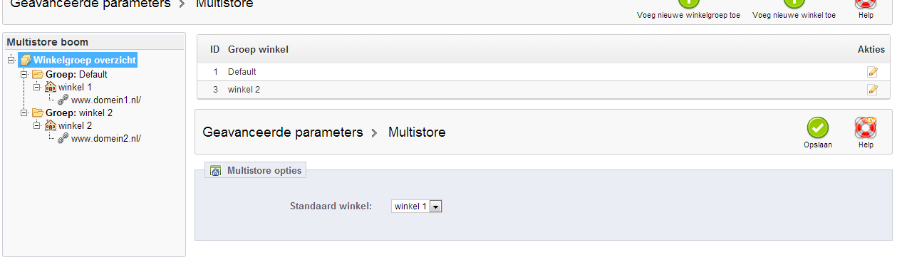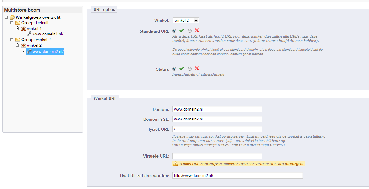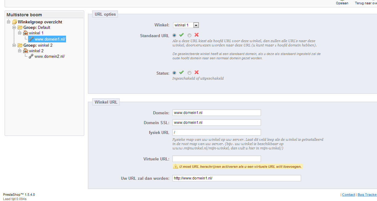 ik heb vanuit direct admin een cname record gemaakt naar domein1.nl en in prestashop een nieuwe groep aangemaakt met een nieuwe shop en url.