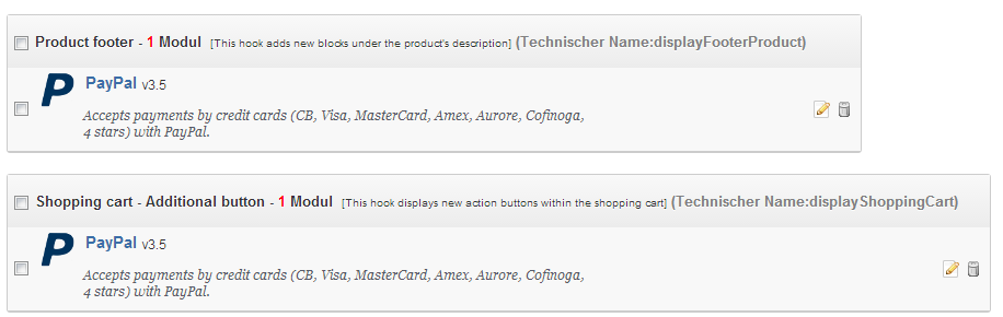 Pronux Posted September 20, 2013 Share Posted September 20, 2013 Habe jetzt auch mal noch kurz einen Test gemacht unter PS 1.5.5 mit Lokalisierung Schweiz (also Standard-Land Schweiz etc.) Unter Module -> Zahlung wird PayPal 3.6 zur Installation angeboten, installiert wird dann aber v3.5.8 Auf der Addon-Seite wird 3.6 angeboten, der Download beinhaltet im Moment leider auch noch v.3.5.8 Anyhow, unter PayPal -> Konfigurieren kann dann nur "PayPal Express" selektiert werden, wodurch auf den Produkteseiten die PayPal-Buttons angezeigt werden. Ist hier in CH zwar rechtlich unbedenklich, allerdings von mir aus gesehen in PrestaShop unbrauchbar. Hoffe die v3.6 wird dies beheben... wenn denn verfügbar... Link to comment Share on other sites More sharing options...