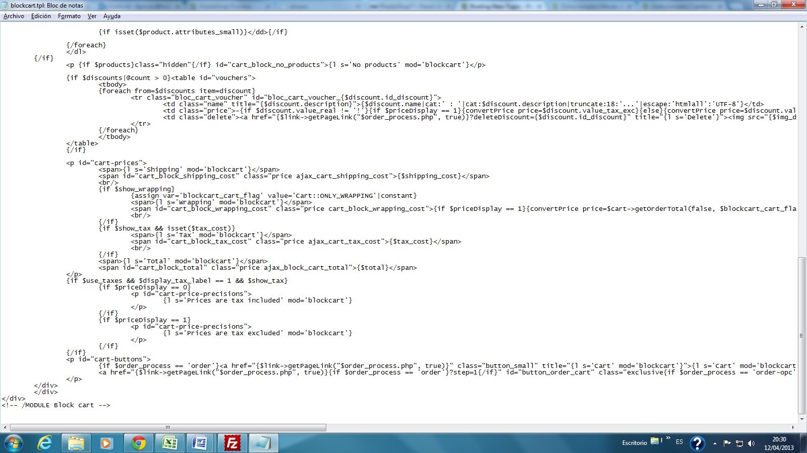 Vic 27 Posted April 13, 2013 Author Share Posted April 13, 2013 Aquí sigo, lo he mandado al otro mundo, después he desactivado el bloque y... desaparece el carrito de la barra del menú. Esto es lo que había: <!-- Block user information module HEADER --> <ul id="header_user"> <li id="header_user_info"> {l s='Welcome' mod='blockuserinfo'}, {if $cookie->isLogged()} <span>{$cookie->customer_firstname} {$cookie->customer_lastname}</span> ( <a href="{$link->getPageLink('index.php')}?mylogout" title="{l s='Log me out' mod='blockuserinfo'}">{l s='Log out' mod='blockuserinfo'}</a> ) {else} ( <a href="{$link->getPageLink('my-account.php', true)}">{l s='Log in' mod='blockuserinfo'}</a> ) {/if} </li> <li id="your_account"><a href="{$link->getPageLink('my-account.php', true)}" title="{l s='Your Account' mod='blockuserinfo'}">{l s='Your Account' mod='blockuserinfo'}</a></li> </ul> <div id="shopping_cart"> {if !$PS_CATALOG_MODE} <a href="{$link->getPageLink("$order_process.php", true)}" title="{l s='Your Shopping Cart' mod='blockuserinfo'}">{l s='Cart:' mod='blockuserinfo'}</a> <span class="ajax_cart_quantity{if $cart_qties == 0} hidden{/if}">{$cart_qties}</span> <span class="ajax_cart_product_txt{if $cart_qties != 1} hidden{/if}">{l s='product' mod='blockuserinfo'}</span> <span class="ajax_cart_product_txt_s{if $cart_qties < 2} hidden{/if}">{l s='products' mod='blockuserinfo'}</span> <span class="ajax_cart_no_product{if $cart_qties > 0} hidden{/if}">{l s='(empty)' mod='blockuserinfo'}</span> {/if} </div> <!-- /Block user information module HEADER --> Y ahora está así: <!-- Block user information module HEADER --> <ul id="header_user"> <li id="your_account"><a href="{$link->getPageLink('my-account.php', true)}" title="{l s='Your Account' mod='blockuserinfo'}">{l s='Your Account' mod='blockuserinfo'}</a></li> </ul> <div id="shopping_cart"> {if !$PS_CATALOG_MODE} <a href="{$link->getPageLink("$order_process.php", true)}" title="{l s='Your Shopping Cart' mod='blockuserinfo'}">{l s='Cart:' mod='blockuserinfo'}</a> <span class="ajax_cart_quantity{if $cart_qties == 0} hidden{/if}">{$cart_qties}</span> <span class="ajax_cart_product_txt{if $cart_qties != 1} hidden{/if}">{l s='product' mod='blockuserinfo'}</span> <span class="ajax_cart_product_txt_s{if $cart_qties < 2} hidden{/if}">{l s='products' mod='blockuserinfo'}</span> <span class="ajax_cart_no_product{if $cart_qties > 0} hidden{/if}">{l s='(empty)' mod='blockuserinfo'}</span> {/if} </div> <!-- /Block user information module HEADER --> Muchas gracias, de verdad, por ayudarme Link to comment Share on other sites More sharing options...