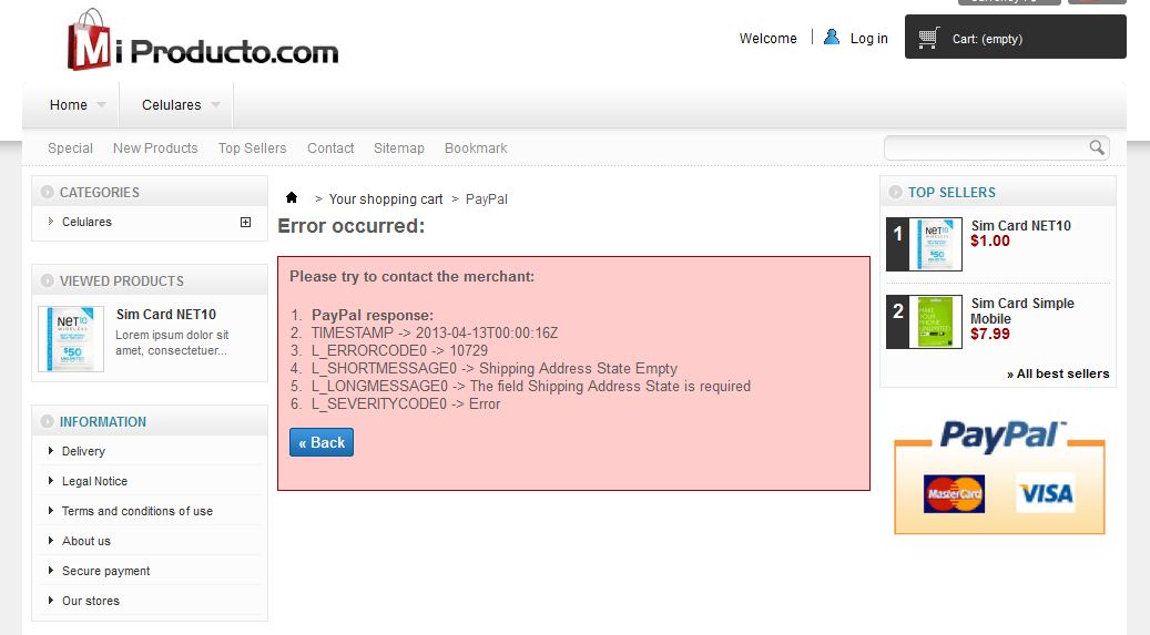 mojtabam Posted May 21, 2014 Share Posted May 21, 2014 I am using prestashop 1.5.4.1 and paypal module 3.5.0. I have tried to buy a test product with express checkout but I got this error: Please try to contact the merchant: PayPal response: TIMESTAMP -> 2014-05-21T15:45:53Z L_ERRORCODE0 -> 10729 L_SHORTMESSAGE0 -> Shipping Address State Empty L_LONGMESSAGE0 -> The field Shipping Address State is required L_SEVERITYCODE0 -> Error http://www.kado2iran.com If you search test, a test product is there with price of 0.1 CAD. I really appreciate if you could do a test and help me to solve this problem. Thank you very much in advance. Link to comment Share on other sites More sharing options...