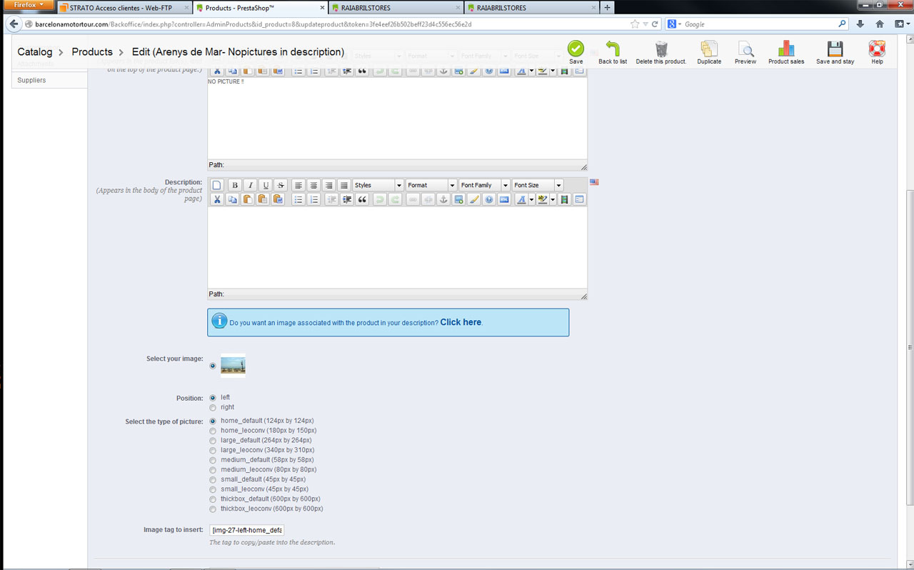 No funciona INSERTAR imagenes en short descriptions, y tampoco en otros módulos estáticos que usan el mismo formato. Puedo subir sin problema la imagen pero siempre sale "?" o NO SALE NADA.