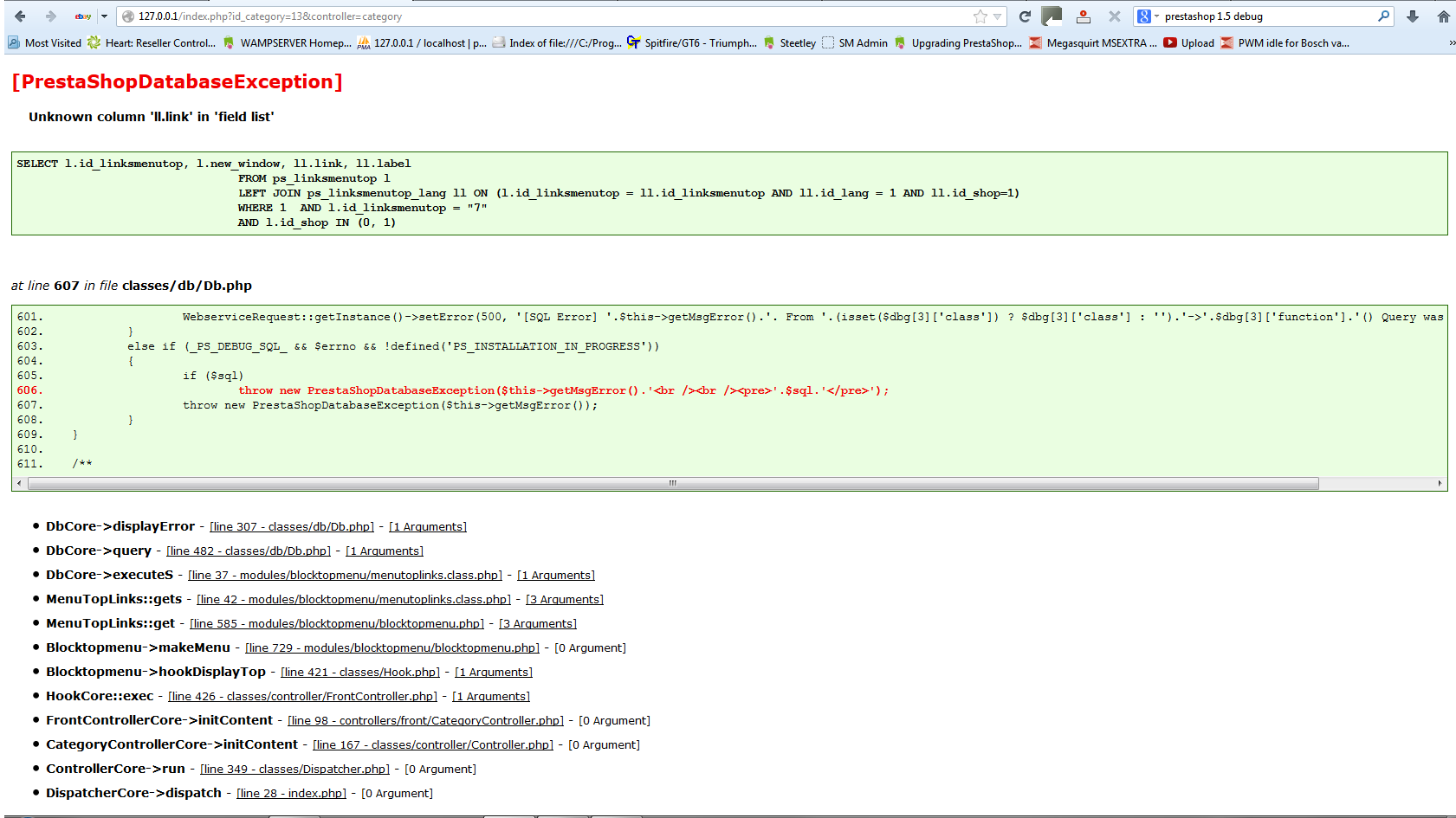 bainzy Posted April 29, 2013 Author Share Posted April 29, 2013 Here is what I see when debugging is enabled, and I try to view products by category. Link to comment Share on other sites More sharing options...