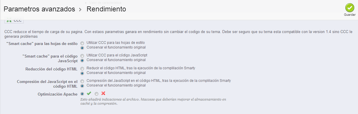 Mi página iba muy lenta y, entonces, activé el caché y la compresión CCC.