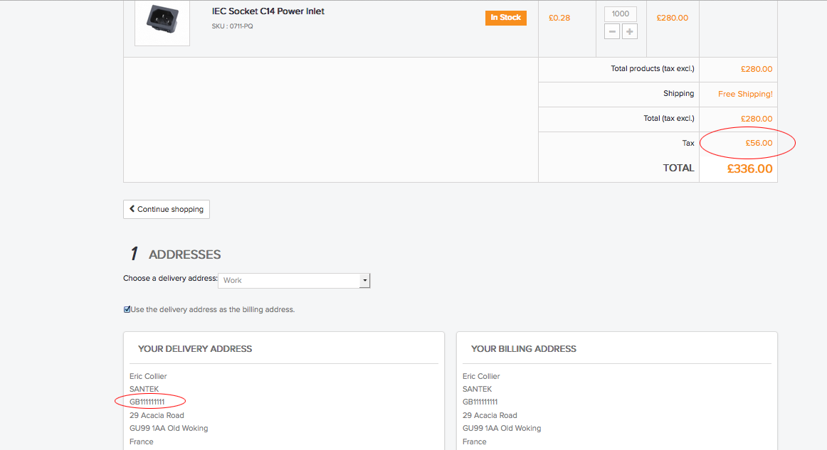 BUT there is an issue you should all be aware of - shipping costs. We have a courier set up and we have to charge VAT to EU customers of course. If they do enter the VAT number, the VAT is STILL on the shipping costs