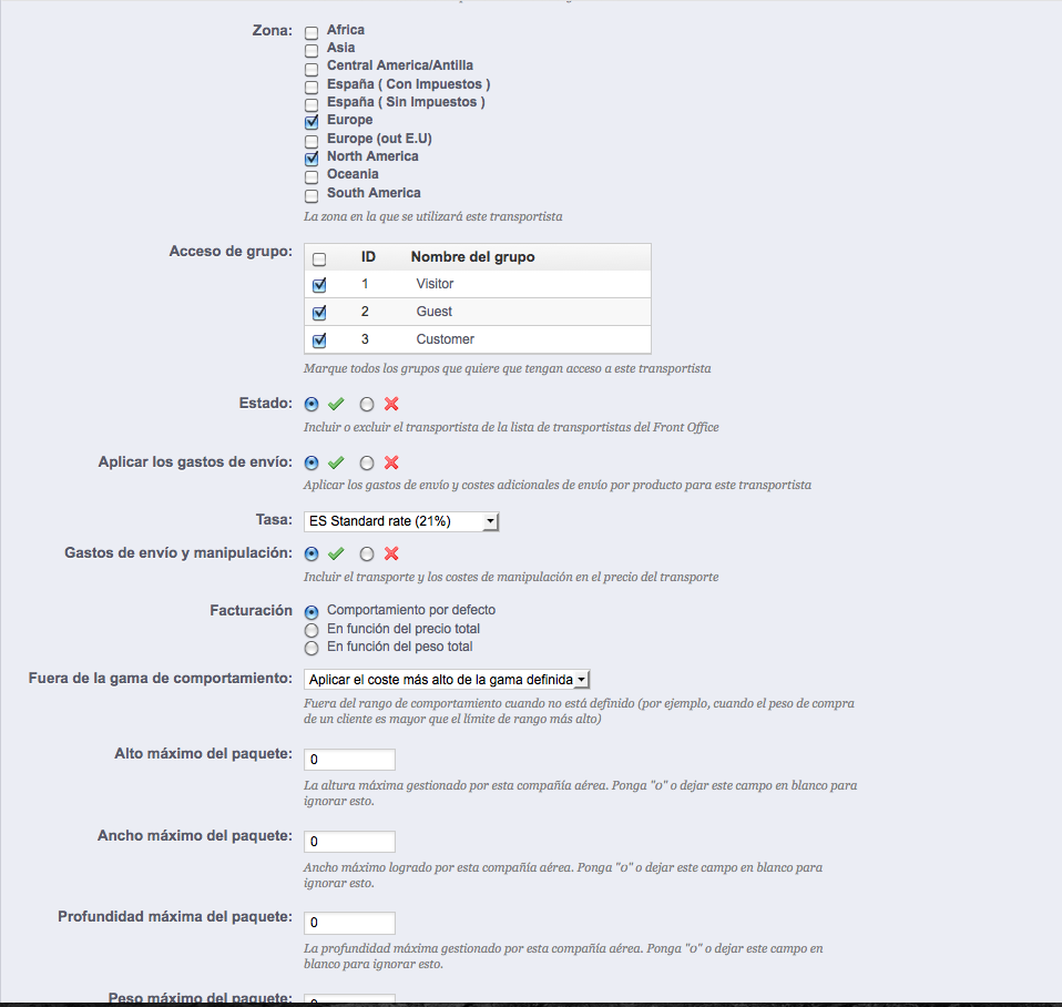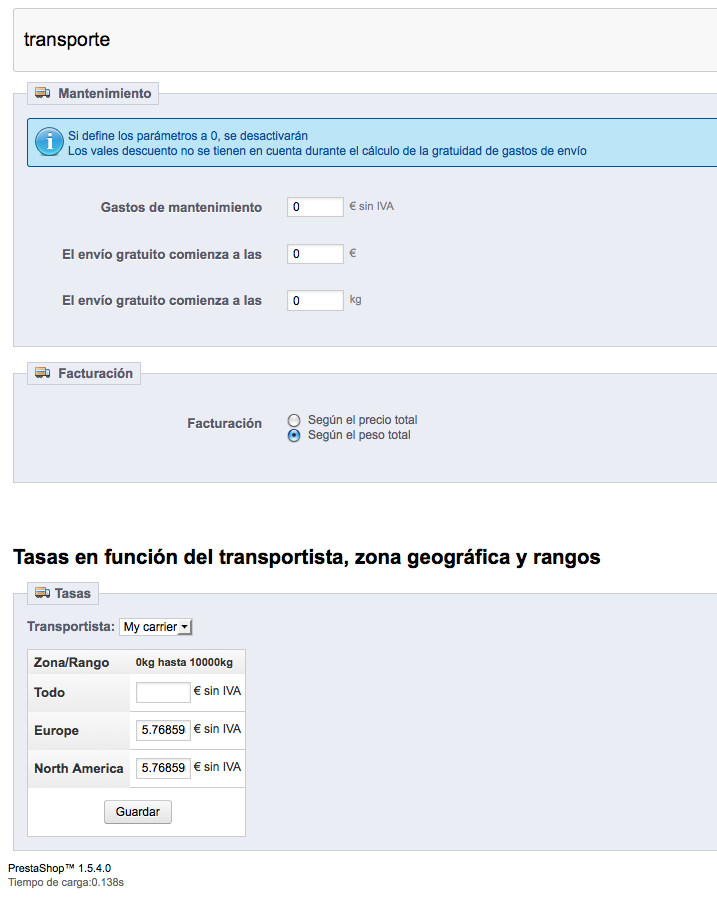 asmeib Posted April 21, 2013 Share Posted April 21, 2013 (edited) Hola! El problema es que me aparece gastos de envio gratis, cuando creo que tengo configurado que los gastos son 6,98€ con iva. No se que tengo mal. Os mando como tengo configurado transporte, dentro de transportistas my carrier, y el my carrier. Si alguien me pudiera ayudar se lo agradeceria muchisimo. www.fumar-lo.es/pruebas Edited April 21, 2013 by asmeib (see edit history) Link to comment Share on other sites More sharing options...