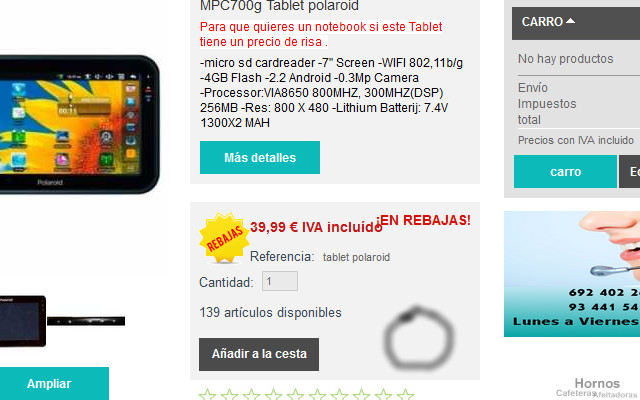 nadie Posted April 22, 2013 Share Posted April 22, 2013 Hola, es la primera vez que pido ayuda en el foro de Prestashop. Quisiera que en la "caja" donde se muestra el precio, unidades, stock, y referencia del producto añadir un gif en todos los productos de "2 años de garantía" pero no sé dónde ni cómo modificarlo. He visto que cuando el artículo está en rebajas aparece un gif arriba a la izquiera que pone "en rebajas" en color amarillo. He buscado la ubicación del gif y lo encontré en digitalshoping.com/themes/theme015/img así que ahi he puesto el gif que quiero mostrar, pero ahora, qué? no tengo ni idea de programación ni css ni php...si alguien me puede ayudar se lo agradezco mucho. Adjunto una muestra de el lugar donde quiero que aparezca el icono que lo he marcado con un cículo gris. Mi web es digitalshoping.com Saludos Puedes editar el fichero: http://www.digitalshoping.com/themes/theme015/product.tpl Puedes por ejemplo agregar esto: <div id="nadie"><img src="{$img_dir}nombre_de_la_imagen_que_has_subido_a_la_carpeta_img_de_tu_plantilla" /></div> antes de esto: {if isset($HOOK_PRODUCT_ACTIONS) && $HOOK_PRODUCT_ACTIONS}{$HOOK_PRODUCT_ACTIONS}{/if} <div class="clear"></div> O puedes usar por ejemplo este módulo: http://contentbox.org/ y colocarlo en el hook correspondiente. 1 Link to comment Share on other sites More sharing options...