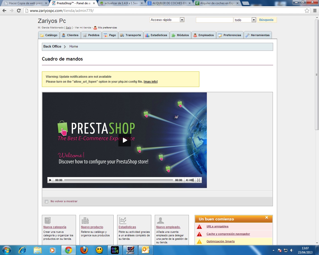 Bajate ese modulo sino lo tienes, y recuerda si no puedes colocar el allow_url_fopen en on, revisa este tema: http://www.prestasho...-click-upgrade/