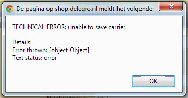 jinxz Posted May 3, 2013 Author Share Posted May 3, 2013 Ik heb ondertussen de error-reporting/debug functie van PS uit gezet om de pop-up error te omzeilen maar kom op de shoppingcart page nogsteeds de "unable to save carrier error" tegen. De shop staat ondertussen open voordat ie live gaat: http://shop.delegro.nl/index.php?controller=order-opc&shipping_cart=1 Iemand AUB een idee wat de carrier error kan veroorzaken?? Link to comment Share on other sites More sharing options...