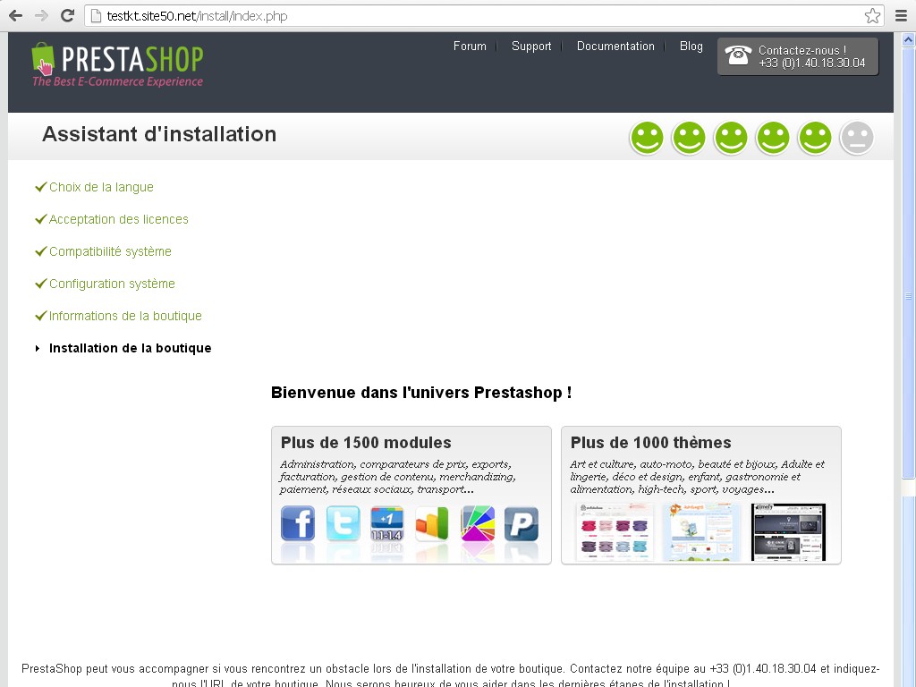 KiwiToast Posted April 23, 2013 Share Posted April 23, 2013 (edited) Bonjour tout le monde ! J'essaie depuis hier d'installer PrestaShop chez 000webhost.com pour apprendre à le faire avant de me lancer sur l'hébergeur que paie mon boulo (auquel je n'ai de toutes façons pas accès pour l'instant). J'ai pas mal galéré, mais jusqu'à là les divers documentations que j'ai trouvé sur le net m'ont permis de continuer à avancer. Maintenant, j'arrive à la finalisation de l'installation, et la dernière étape échoue sans me donner aucune indication. Je ne trouve nulle part de témoignage d'un problème qui ressemblerait au mien. J'avoue que je craque. ^^ Bref, j'essaie donc d'installer la dernière version de PrestaShop, dont l'assistant d’installation me semble avoir été amélioré depuis les dernières versions : Je n'ai pas eu a faire pas mal de procédures décrites dans les tutoriaux de ce forum. J'ai réussi à passer les 5 premières étapes : Choix de la langue, Acceptation des licences, Test de la configuration, Config de la BDD, Informations sur la boutique. Reste la dernière étape : Installation de la boutique. Et là, c'est le drame. Je me retrouve toujours dans l'interface d'installation, mais j'ai une page complètement blanche, avec seulement : Bienvenu dans l'univers PrestaShop ! suivi de deux images/liens vers les MOD et les Thèmes. Bien qu'un peu étonné par cette fin plutôt cavalière, je me suis dit que l'install était peut-être bonne, mais rien n'a été créé dans la BDD. Soit je n'ai vraiment rien compris au fonctionnement d'un site web, soit le site en question n'est pas installé. oO Autre chose étrange : Je suis redirigé vers l'adresse http://testkt.site50...stall/index.php Comme j'avais vu que je devrai modifier les autorisations liées à certains dossiers/fichiers sur le ftp, j'ai tenté de le faire. Mais l'arborescence de mes fichiers est différente de celle qui est indiqué dans les docs que j'ai trouvé. Certains des fichiers à modifier n'existent pas. J'en déduit (peut-être à tord) que mon problème n'est pas là ? Comme vous pourrez le voir si vous allez sur mon lien ci dessus, l'hébergeur impose une pub sur chaque page qui s'incruste par dessus la page chargée. J'espère que le problème ne vient pas de là. :/ Bref, quelqu'un à une idée pour sauver les derniers cheveux de mon crane avant que je les arrache ? ^^ Edited April 23, 2013 by KiwiToast (see edit history) Link to comment Share on other sites More sharing options...