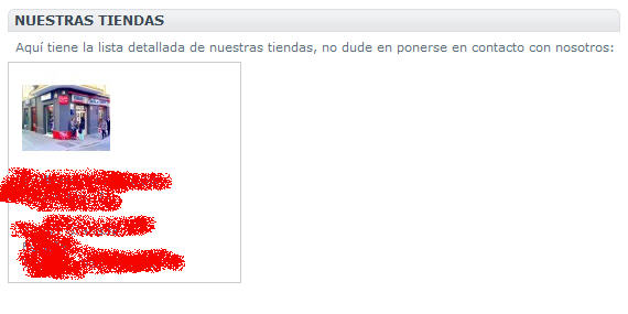 nadie Posted April 24, 2013 Share Posted April 24, 2013 Hola a todos, tengo un problema que me está volviendo loco, os parecerá una tontería pero yo no soy programador. Es la siguiente: ¿Como puedo modificar las dimensiones de la imagen que se muestra en el bloque de tiendas? He buscado por todas partes y no doy con la tecla, en los CSS, bockstore... Adjunto captura. Muchas gracias de antemano. Ok, Es que mira en el fichero: /themes/tu-plantilla/stores.tpl tienes esto: <img src="{$img_store_dir}{$store.id_store}-medium_default.jpg" alt="" width="{$mediumSize.width}" height="{$mediumSize.height}" /> esta cojiendo el tipo "medium_default" que tienes definido en la pestaña Preferencias -> Imagenes, mi recomendacion depende aumentar las medidas del tipo "medium_default", crea un nuevo para que no se descuadren otras imagenes de la tienda. Añade un nuevo tipo de imagen en la pestaña Preferencias -> Imagenes, llamalo tiendasimg asignale las medidas que quieras. Dile que solo se aplique a "Tiendas". Guarda los cambios. Despues en la misma pestaña, Regenera las miniaturas de ese nuevo tipo que has creado. Despues en el fichero: /themes/tu-plantilla/stores.tpl Busca esto: <img src="{$img_store_dir}{$store.id_store}-medium_default.jpg" alt="" width="{$mediumSize.width}" height="{$mediumSize.height}" /> Y dejalo asi: <img src="{$img_store_dir}{$store.id_store}-tiendasimg.jpg" alt="" /> 1 Link to comment Share on other sites More sharing options...