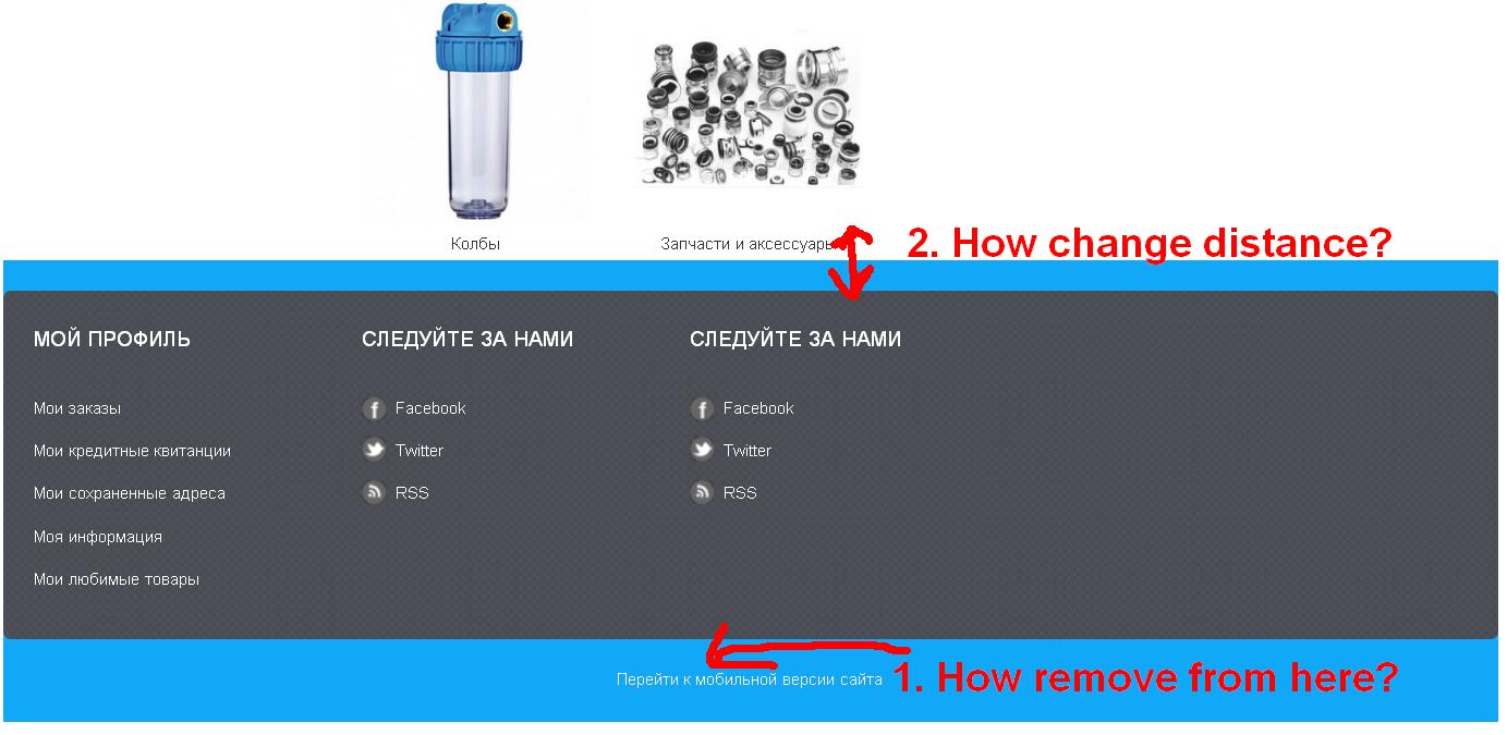 kotkotan Posted April 25, 2013 Share Posted April 25, 2013 Hello. I try to use Easy Footer Module, but i can't move title 'Browse the mobile site' from original footer. I need this option, so i can't just off this option. So... 1. How to remove it from original footer and add to Easy Footer? 2. And how to change distance between categories on the main page and footer? Footer is located so close to categories... thanks Link to comment Share on other sites More sharing options...
