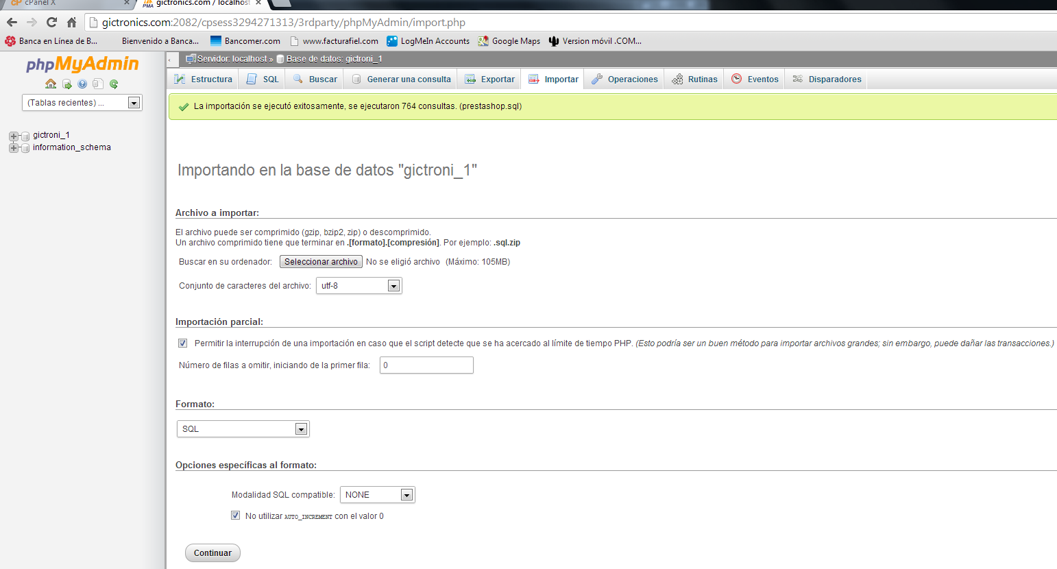 Sergio Ruiz Posted September 17, 2013 Share Posted September 17, 2013 Creo que resolvi esa parte porque efectivamente debia seleccionar Prestashop y despues importar para que en mi phpadmin del host acual importara y lo creo bien... les anexo imagen ya no hay error .... ahora lo que sigue. Por lo que se ve en la imagen, efectivamente parece que se importo correctamente. Link to comment Share on other sites More sharing options...
