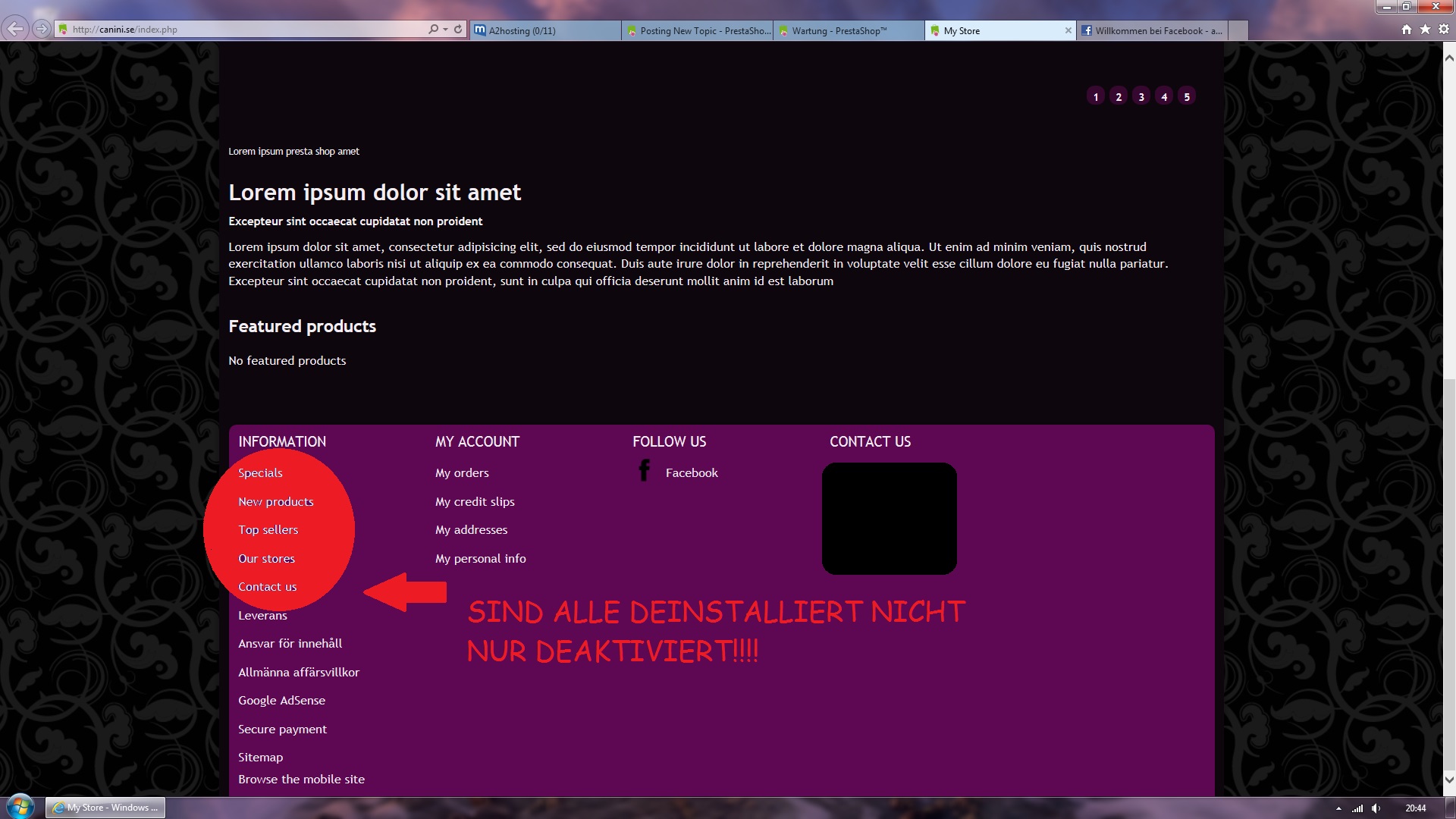 Canini Posted April 28, 2013 Share Posted April 28, 2013 Hallo ich habe ein Problem.. Auf meiner Seite sind im Footer die deinstallierten Module noch immer sichtbar. Ich weiß einfach nicht wie ich die aus meinem Infoblock rausbekomme. Vielleicht sehe ich ja den Wald vor Bäumen nicht mehr ... Na ja ich hoffe jemand kann mir helfen. Vielen Dank schon mal. Link to comment Share on other sites More sharing options...
