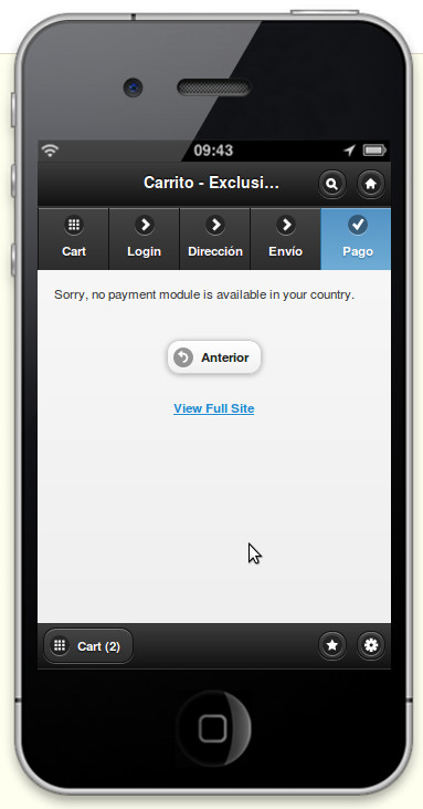 rakshitha Posted April 30, 2013 Share Posted April 30, 2013 Hi! Have installed the mobile template extension for prestashop 1.4.7. Everything works fine on desktop computers. But, on mobile phones or tablets, the last step in purchasing, ie. payment give an error: "Sorry: No payment module is available in your country". I've got 4 payment modules enabled and all of them are enabled for all countries, in the payments section. And it works fine on my desktop too. Please help me out with this. Thank you very much in advance. I'm very new to Prestashop so, please bear with me, if I speak like a total noob. Link to comment Share on other sites More sharing options...