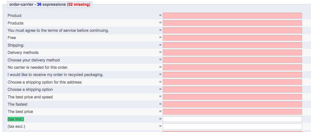 tdr170 Posted July 10, 2013 Author Share Posted July 10, 2013 Well in my case there is no text in the translation column to delete or change, am I missing something here. I was able to change the cart summary page and remove the (tax incl.) from Total, Total shipping and others but not from the carrier page. did you have text in the field to delete??? Link to comment Share on other sites More sharing options...