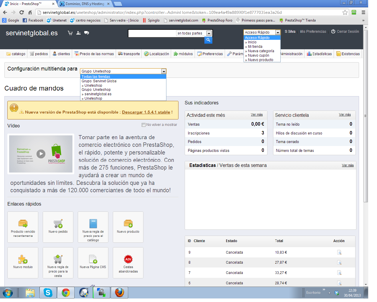Saima Posted April 30, 2013 Share Posted April 30, 2013 (edited) Hola, necesito ayuda urgente, estaba configurando la multitienda y se me quedó bloqueada y no me deja hacer nada de nada. creo que se me quedó desbloqueada la opcion de seleccionar multitienda mi tienda es esta http://servinetglobal.es/uneteshop pero al entrar de dice que no se encuentra en el servidor. dejo dos pantallazos uno general y otro del apartado multitienda Gracias Solucionado con una restauración rápida, perdí configuraciones pero bueno...... más trabajo Edited April 30, 2013 by servivedra (see edit history) Link to comment Share on other sites More sharing options...