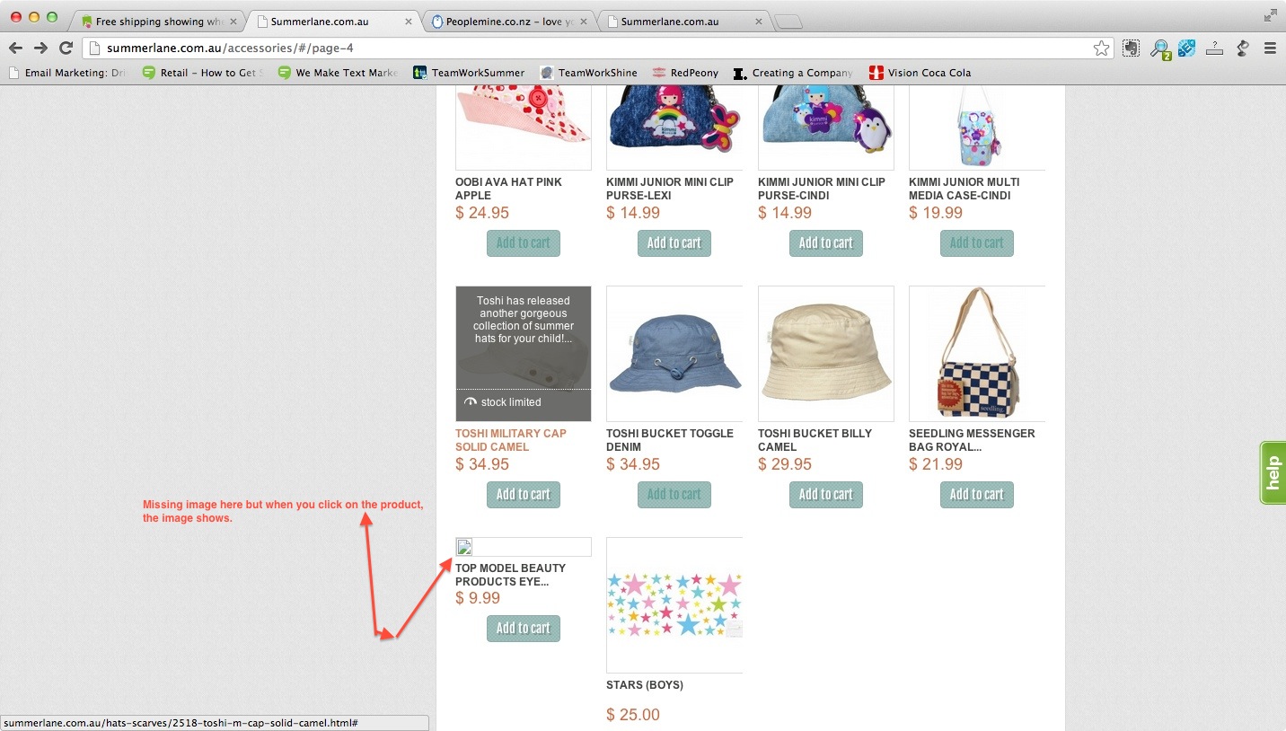fashionpup Posted May 1, 2013 Author Share Posted May 1, 2013 Hi fashionpup, please try to upload your image product or you must Regenerate the product again. Thanks, Hi there thank you for the reply. I tried to upload the image. It works when I click on the product. But when I click on a general category that shows all the products (including the erroneous one in question), that product doesn't show in the overview. I've attached a screenshot Link to comment Share on other sites More sharing options...