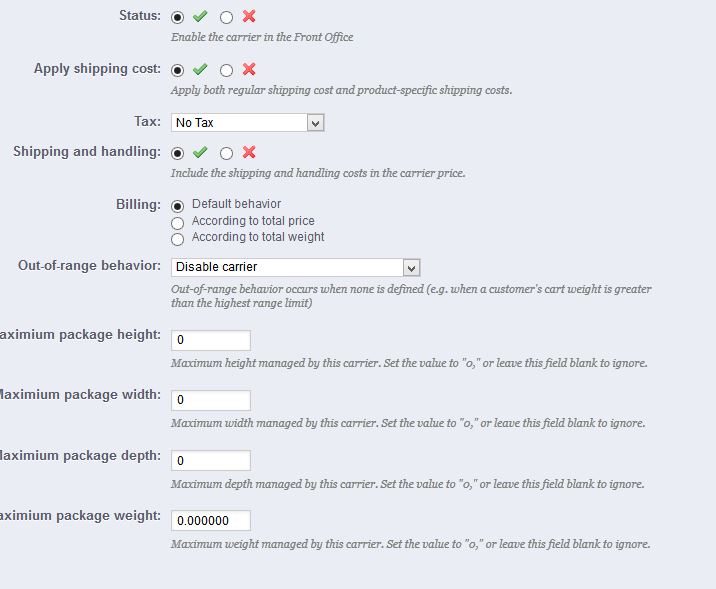 precisebusinessadvice Posted May 13, 2013 Share Posted May 13, 2013 (edited) Hi, Iv had a look on mine which is version 15.4 in the products section, you can select the dimensions of the item, and also the weight of the item - see attached image then if i head to "shipping > carriers then edit one of my carriers with the edit button, i see an option for dimensions at the bottom which say max dimensions and max weight It might take some time to implement it, and i think you will have to set the default billing for the carrier as "by weight". so in summary, create a couple of carriers (eg, small letter, large letter, parcel) to the dimensions of royal mail in the shipping>carriers section, and add the max weight too............. then head to your products and add the dimensions and weight too. please note that I havnt used this method before so i dont know how it exactly works.... say for example if I order 1 item, that is within royal mails large letter, it would work fine and the option would be "large letter" in your checkout - BUT, if i ordered 10 of the same item, can you get 10 items into a large letter, or does prestashop add up the sizes, or does it work by weight? - thats the bit im unsure of... But basically, that is the only way in option 1.5.4 hope it helps somewhat and if anyone knows how sizes/weight shipping works that would be great too Edited May 13, 2013 by precisebusinessadvice (see edit history) 1 Link to comment Share on other sites More sharing options...