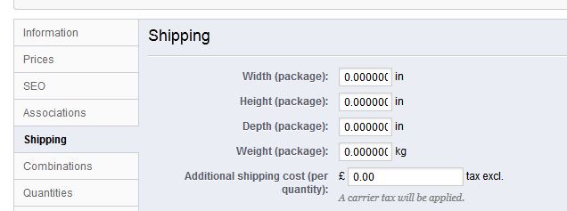 alwaysperplexed Posted May 16, 2013 Author Share Posted May 16, 2013 Hi, Iv had a look on mine which is version 15.4 in the products section, you can select the dimensions of the item, and also the weight of the item - see attached image then if i head to "shipping > carriers then edit one of my carriers with the edit button, i see an option for dimensions at the bottom which say max dimensions and max weight It might take some time to implement it, and i think you will have to set the default billing for the carrier as "by weight". so in summary, create a couple of carriers (eg, small letter, large letter, parcel) to the dimensions of royal mail in the shipping>carriers section, and add the max weight too............. then head to your products and add the dimensions and weight too. please note that I havnt used this method before so i dont know how it exactly works.... say for example if I order 1 item, that is within royal mails large letter, it would work fine and the option would be "large letter" in your checkout - BUT, if i ordered 10 of the same item, can you get 10 items into a large letter, or does prestashop add up the sizes, or does it work by weight? - thats the bit im unsure of... But basically, that is the only way in option 1.5.4 hope it helps somewhat and if anyone knows how sizes/weight shipping works that would be great too Hi there and thanks for the reply. I can add width and height in products in 1.4.10 which is the version I'm on but there are no options in carriers for that so I should probably upgrade to 1.5.4 if those options are there. I will install a test version and see if it does work that way or not - as you say does it add up the sizes or the weights - because our wonderful post office works on size and weight lol Link to comment Share on other sites More sharing options...