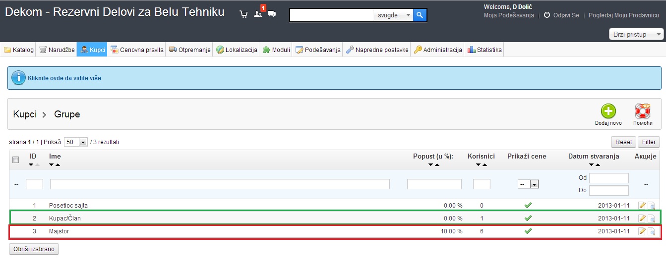 Dolke Posted May 2, 2013 Share Posted May 2, 2013 Hi, This questions is already asked in the forums but I don't know if the same solutions provided there suites newest prestashop. OK, I have made 3 different groups of customers. They have IDs 1, 2 and 3. Every time someone registers on my website, it gets group with the ID 3 and I dont want that as that group is for older customers and provide some extra discount. What I want is to make all new registered users to be in the group with the ID 2 by default. Someone may ask if I want to let my customers choose the group when registering. No that's not what I want to do, as I will be the one who will move them from group to group if they reach certain criteria. So What I want to do is to make all registered users on my website part of the group that is marked green in the printscreen attached below. Thank you all in advance. Link to comment Share on other sites More sharing options...