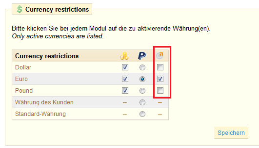 oh_prestashop Posted May 2, 2013 Share Posted May 2, 2013 (edited) Hello! Running 1.4.9 over here. I would like to disable a certain payment module (sofortueberweisung) when a user selects GBP oder USD as a currency. I thought this is what currency restrictions are for, so I've set them up accordingly: However this configuration has no effect. All payment modules are available for every currency. Does anybody know how to fix this? Thanks. Edited May 3, 2013 by avalia (see edit history) Link to comment Share on other sites More sharing options...
