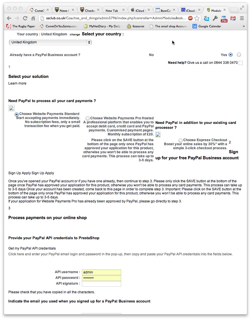 DLowrence Posted May 3, 2013 Share Posted May 3, 2013 I am having a real issue installing this software - It would appear to be unbelievably complex - and the screen layout looks corrupted. Copy of the config screen attached (I have now run this in 3 browsers and 2 operating systems) and you can see the poor layout. When I click on the -Get my PayPal API credentials link, the screen just focus just moves to the top of the screen Pretty poor setup experience - any ideas? Link to comment Share on other sites More sharing options...