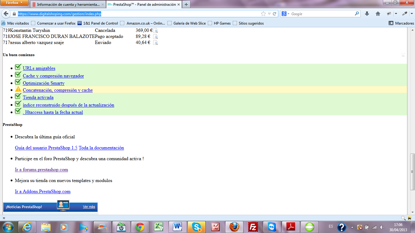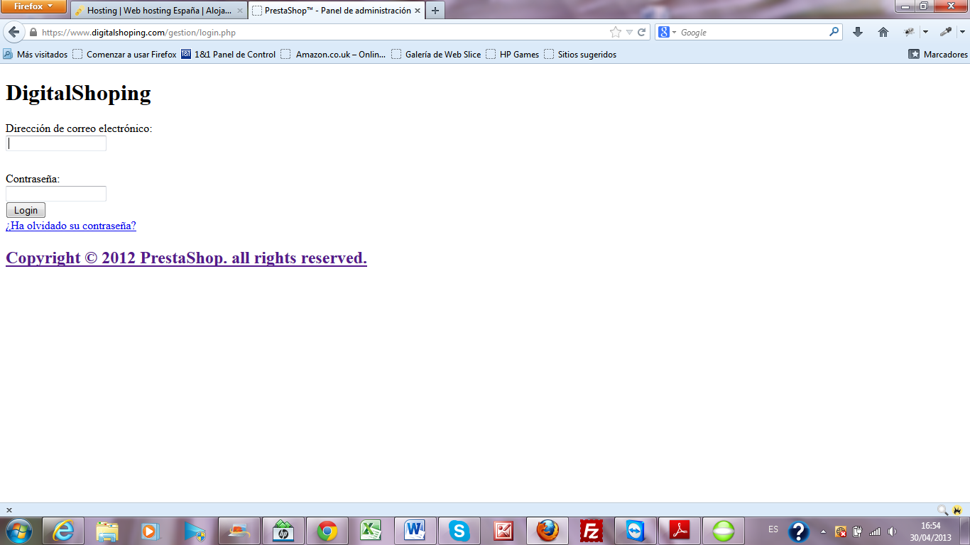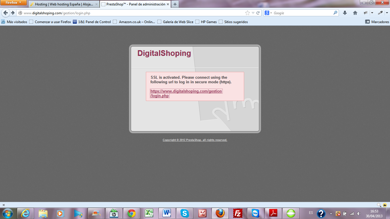 Digitalshoping Posted May 7, 2013 Author Share Posted May 7, 2013 Es verdad!!! qué tontería Es verdad, la carpeta admin el prestashop la pide renombrar y yo misma la renombré como gestion. Ya no me acordaba Gracias por todo nuevamente y ahora edito el post como solucionado. Link to comment Share on other sites More sharing options...
