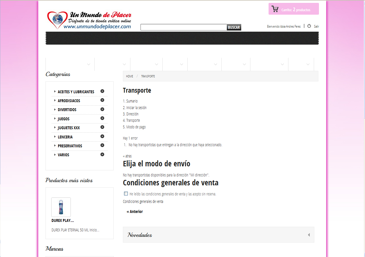 medussa Posted May 3, 2013 Share Posted May 3, 2013 (edited) Hola. Tengo un problema que me esta volviendo loco. Os comento. En Chrome cuando añado un producto al carrito de compra y hago clic en el carrito, me indica que no hay productos en el carrito. Si pruebo en Firefox, veo el pedido con los costes etc, le doy a siguiente, meto la cuenta de usuario que tengo registrada, le doy a siguiente y me sale un error indicandome que no hay transportistas para la direccion seleccionada. Tambien deciros que en el paso anterior donde se ven los datos de la persona registrada con la direccion etc, se ve todo menos la provincia. En los datos de registro del usuario seleccionado, esta la provincia pero luego en el carrito no aparece. Puede ser ahi el error. No se puede completar el proceso de compra. En fin, nadie puede comprar. Adjunto dos imagenes. Muchas gracias. Edited May 6, 2013 by medussa (see edit history) Link to comment Share on other sites More sharing options...