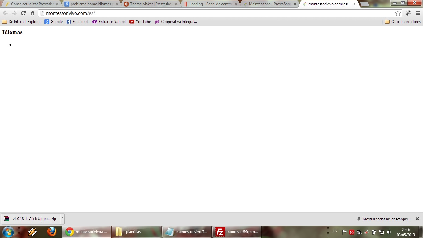 rammen Posted May 3, 2013 Share Posted May 3, 2013 Hola! Estoy actualizando la tienda de 1.4.4 a 1.5.4 tal como lo describen aquí. http://www.loading.e...op-1-4-x-a-1-5/ que es mi hosting. Primero actualizo manualmente a la 1.4.9 y después con el 1-click upgrade. El caso es que no me da ningún error. El back office correcto, pero en el front office me sale esto. La pantalla en blanco y arriba a la izquierda "idiomas", y ya está. Aunque instale un nuevo theme para la versión 1.5.4, continúa igual. Alguien sabe porque? Gracias. Link to comment Share on other sites More sharing options...
