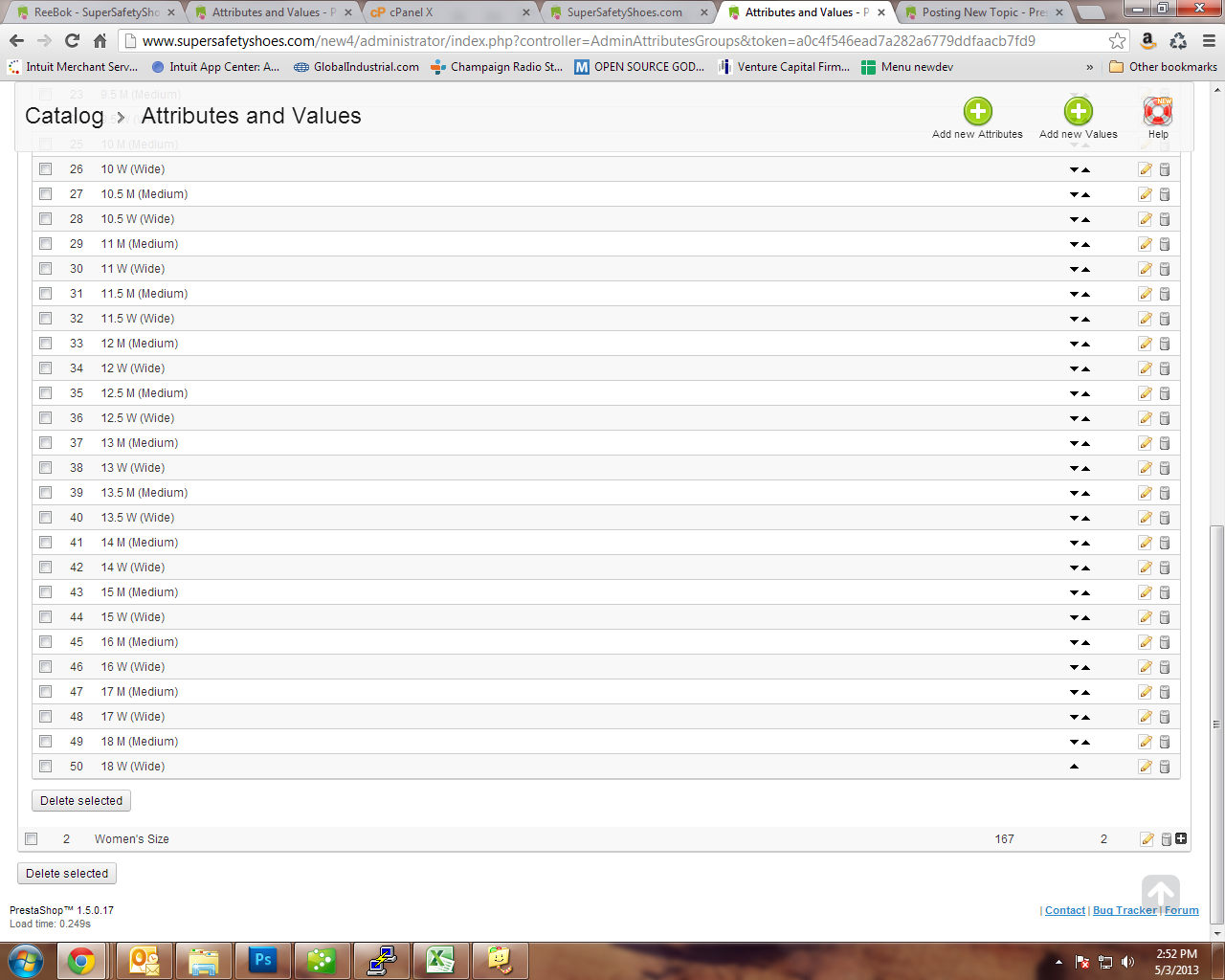 hotwirenetworks Posted May 3, 2013 Share Posted May 3, 2013 I have prestashop 1.5.0.17 installed and when I go to "Catalog->Attributes & Values" I have 2 Attributes. The first Attribute has 273 Values. When I click on the "+" to view/edit/delete... it only shows 50 of the 273. All the values are appearing in the Products Combinations Generator... but not on the Attribute Values list in the admin area. How can I get the back-end to display all my values to view/edit/delete/modify? Link to comment Share on other sites More sharing options...