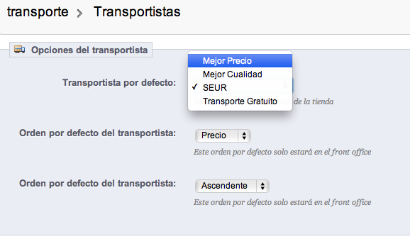 Buenos dias, creo recordar que eso era por el tema de las zonas, no de los transportistas. Es decir tienes que decirle a la tienda que en vez de Europa, que la zona por defecto es Peninsula.