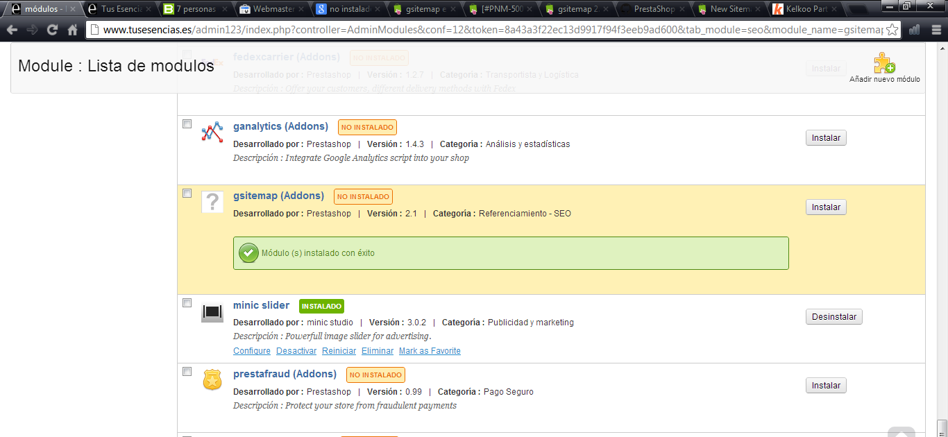 DropNix.com Posted May 14, 2013 Author Share Posted May 14, 2013 me instalé el gsitemap de una versión anterior de prestshop y parece que funciona.. aunque estaría bien que arreglasen la nueva. Link to comment Share on other sites More sharing options...