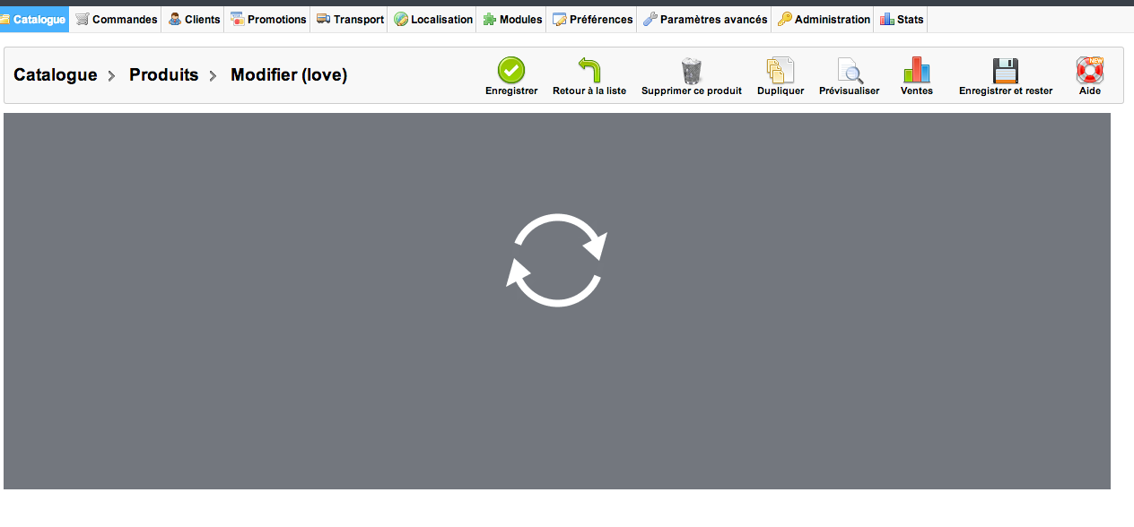 pimousscitron Posted May 15, 2013 Share Posted May 15, 2013 Bonsoir tous. Impossible de trouver une réponse à mon problème sur le forum pour le moment, je poste donc : j'aimerais modifier mes produit mais HO STUPEUR ! La page charge infiniment, donc pas possible d'acceder aux onglets, ni rien. Quelqu'un a-t-il déjà été confronté à ce genre de problème ? Et surtout : quelqu'un a-t-il une solution ? Merci bien Link to comment Share on other sites More sharing options...