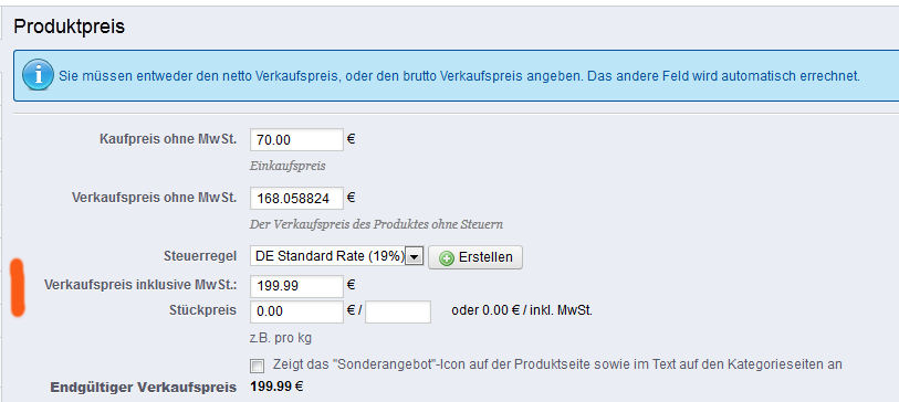 guest* Posted May 16, 2013 Share Posted May 16, 2013 zu 1) dein Server erfüllt vermutlich nicht die Mindestkonfiguration um Prestashop 1.5. betreiben zu können. Die Software lässt sich (fast) überall problemlos installieren, aber bei den ersten eingepflegten Artikeln geht dann garnichts mehr. Bitte überprüfe deine Serverkonfiguration und lass sie an den empfohlen Mindeststandards abändern, damit du problemos einen Shop betreiben kannst. http://www.prestasho...-fur-prestashop zu 2) Was meinst du ? Die Preise werden alle mit Komma angezeigt. Die Anzeige der Währung wird nach Lokalisierung, also landeskonform (für Deutschland 9.000,00) angezeigt. Gib deine Preise doch Brutto ein, also im enstprechenden Feld (inkl. MwSt). S. Screen. Die Preisanzeige dort ist nach dem US-System, dein Komma wird in Punkt umgewandelt, weil das System nur mit dem US-System rechnen kann, aber das tut ja nichts zur Sache, sprich zur korrekten Anzeige der Preise im Front-Office. Link to comment Share on other sites More sharing options...