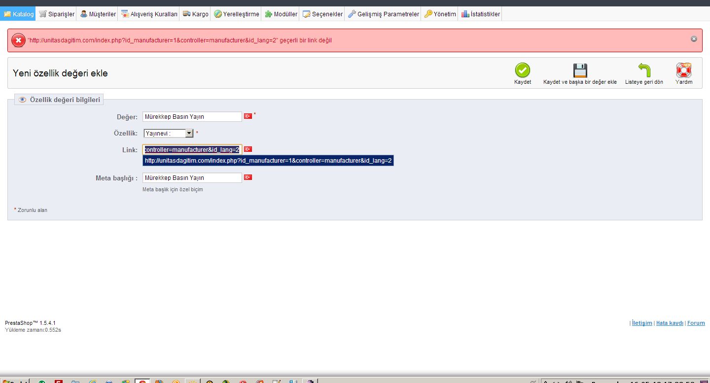 camoka Posted May 16, 2013 Share Posted May 16, 2013 (edited) Merhaba prestashop v1.5.4.1 de özellik alt değer oluştururken link kısmına özellikle ilgili link veriyorum Mesala x yayınevi için http://benimsitem.com/index.php?id_manufacturer=1&controller=manufacturer&id_lang=2 gibi ancak geçerli bir link değildir hatası veriyor. Bu kısma yazılacak link formatı nasıl oluyor bilgisi olan var mı? teşekkürler. Edited May 16, 2013 by camoka (see edit history) Link to comment Share on other sites More sharing options...